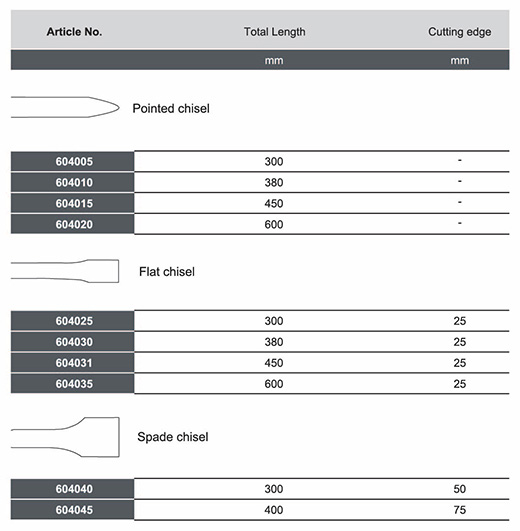 Chisels with 21mm hex shank